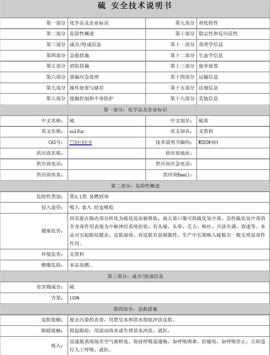 中文名稱:硫磺